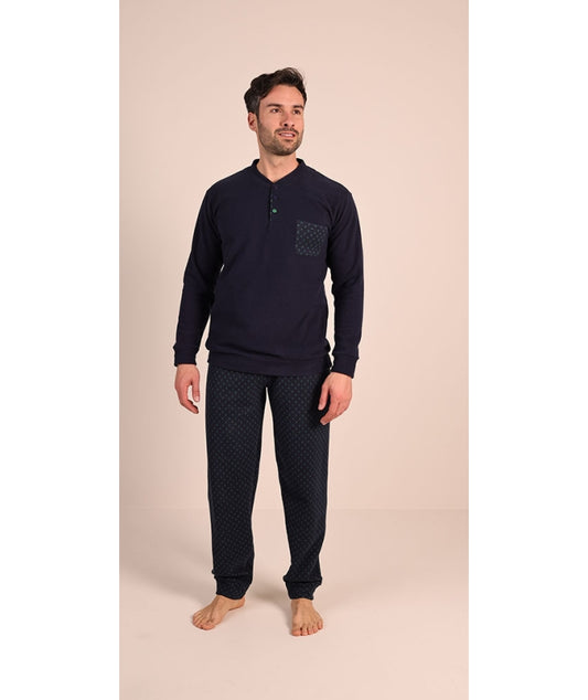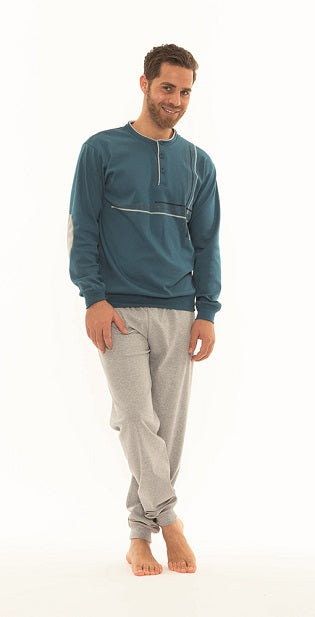 Pigiama uomo 6095 serafino con 3 bottoni con pistagna